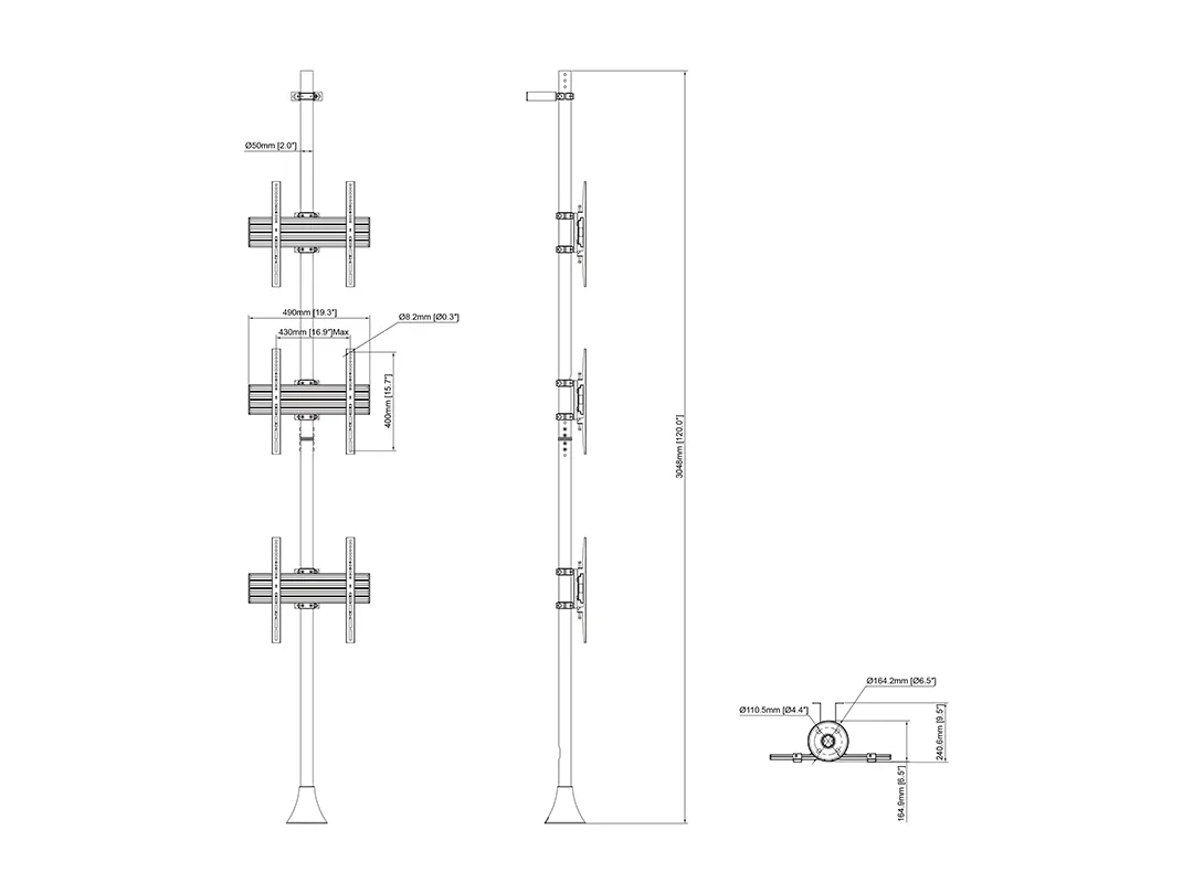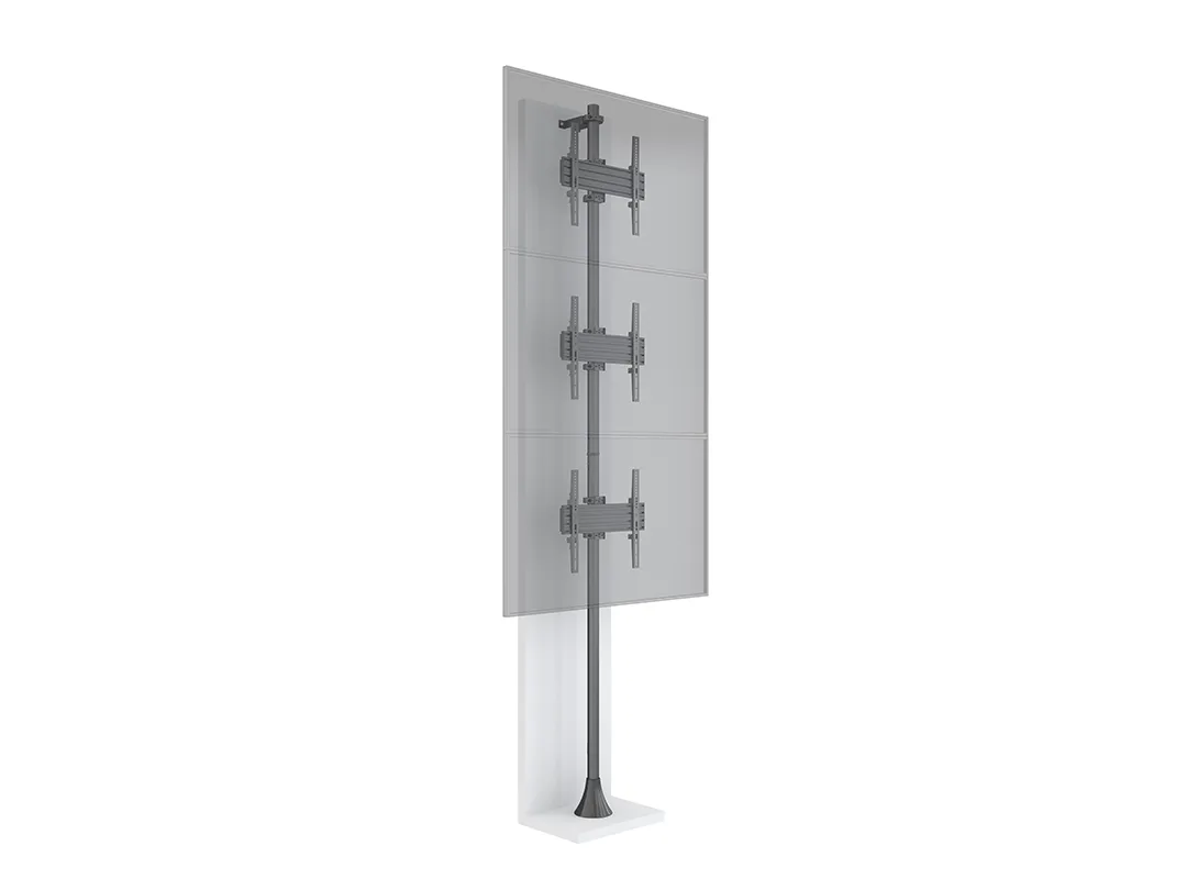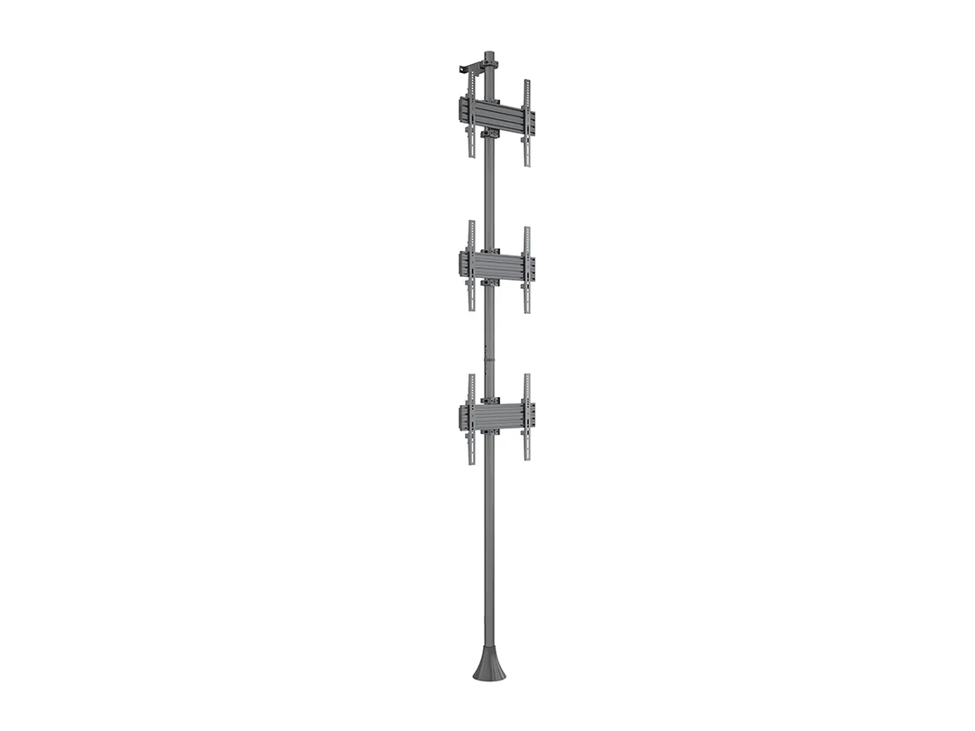 The M Floor to Wall Mount Pro MBFW3U creates a rock steady screen display solution aimed for the retail store, mall or any other public area. 50mm black, brass or chrome tubes can be tailored to fit the environment the unit is positioned in. Mount screens with tilt or fixed displays. Place them side by side and/or above each other.