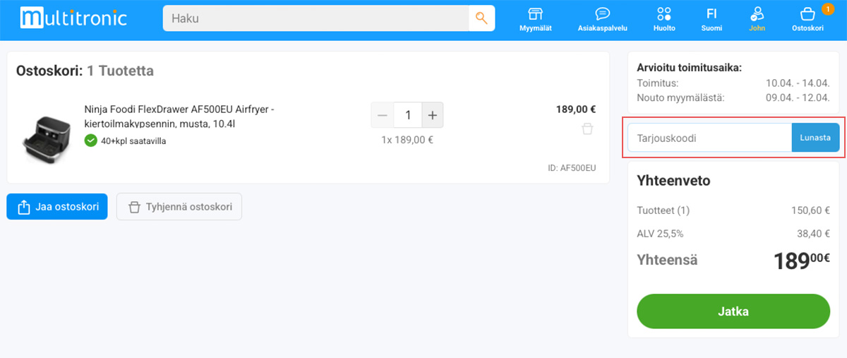 - tai noutaa tilauksesi valitsemastasi myymälästä ilman lisäkuluja