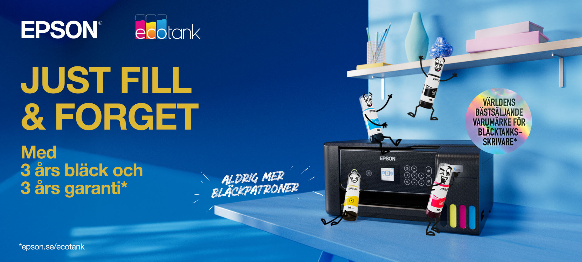 En uppsättning EcoTank-bläckflaskor räcker i upp till 3 år.* Du kan skriva ut tusentals sidor utan att fylla på bläck – och kvaliteten förblir alltid utmärkt.